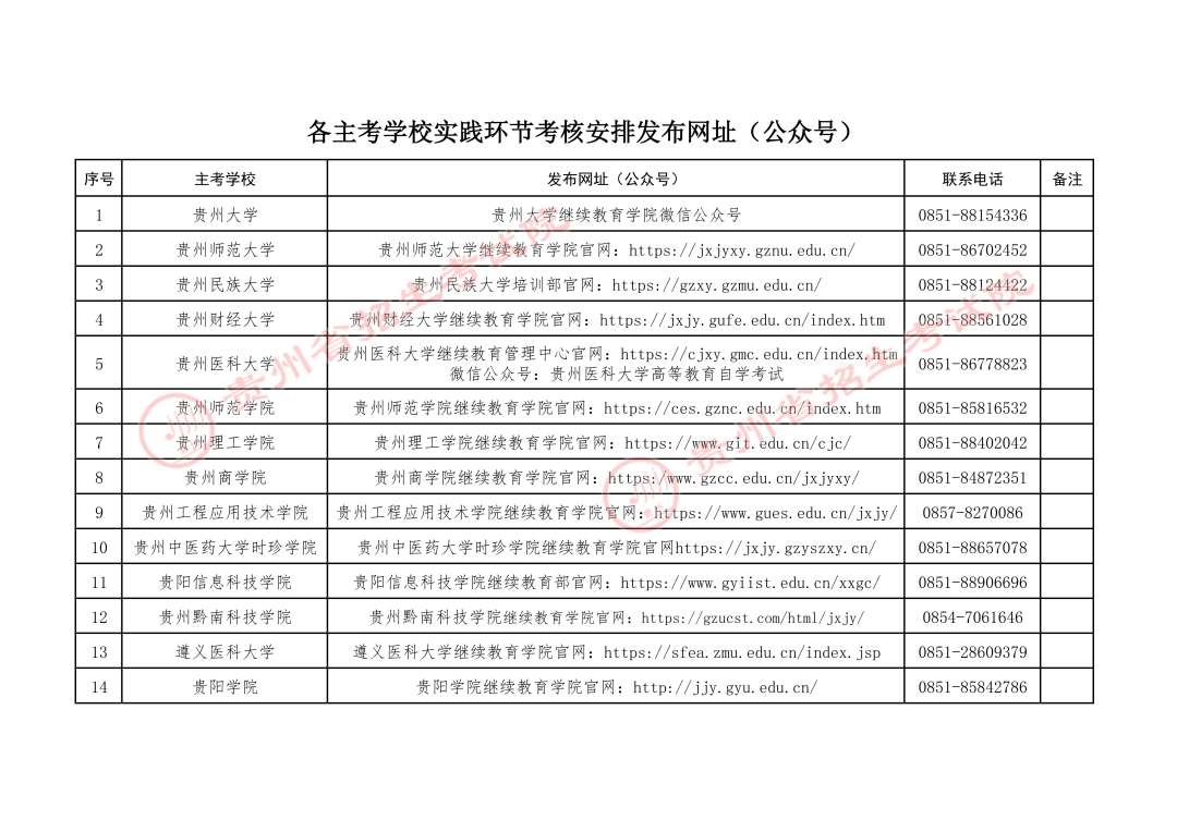2.各主考学校实践环节考核安排发布网址(公众号)