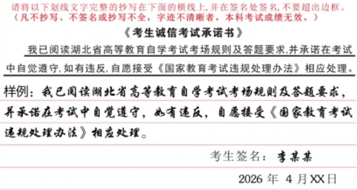 湖北省2026年4月高等教育自学考试考前温馨提示
