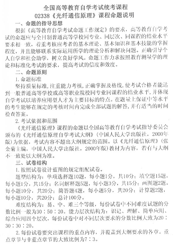 全国09年调整光纤通信原理试卷结构通知
