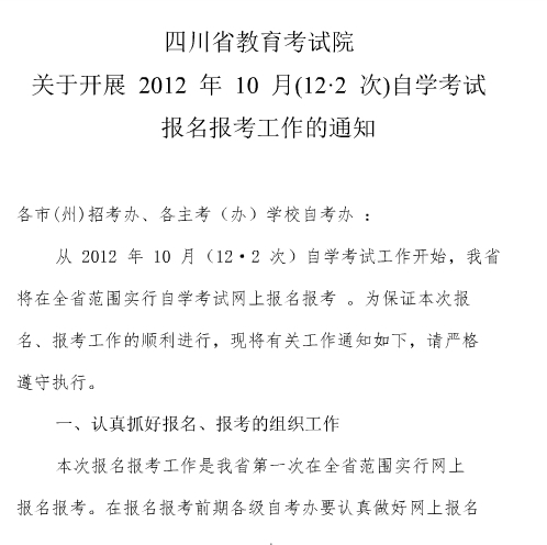 四川2012年10月自学考试课程安排