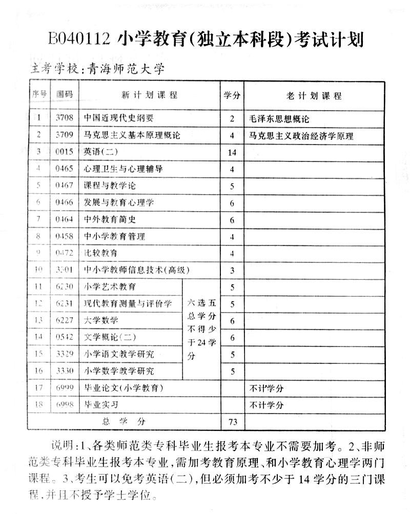 2015年青海自考小学教育(独立本科段)考试计划