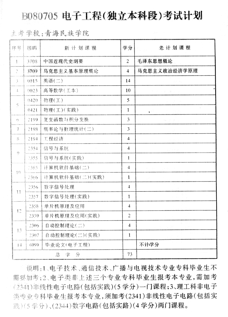 2015年青海自考电子工程专业(独立本科段)考试计划
