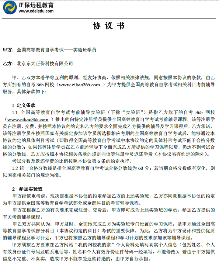 自考“实验班”协议书