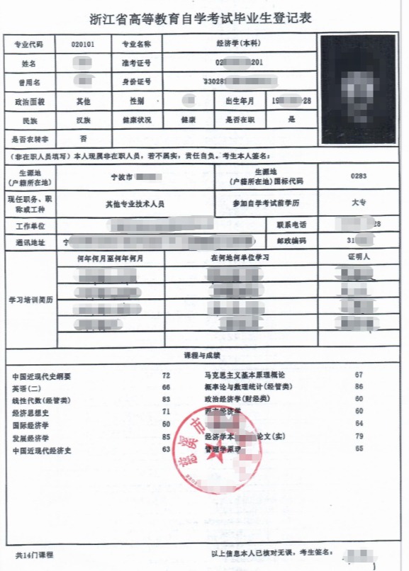①蓝底免冠数码照片(与毕业证上照片一致,可在浙江省教育考试院自学考试信息网上下载)以“姓名+身份证号码”命名;