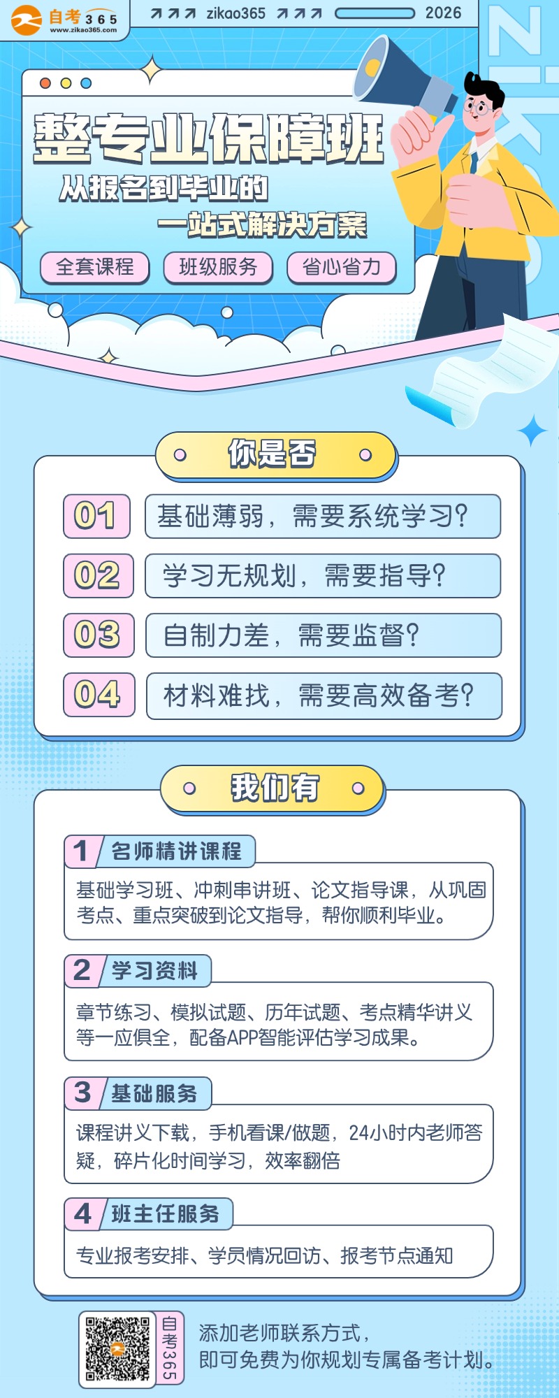 为此,自考365「整专业保障班」应运而生。它不是一堆课程的简单打包,而是一套从报名到毕业的一站式解决方案。