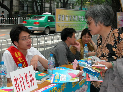 作为省高等教育学会理事单位的省考办,积极参与了本次咨询活动。省考办设置的咨询台前,张贴着醒目的自考形象宣传画和报考简章。省考办派出的咨询小组向行人散发了自考宣传材料,耐心细致地解答了咨询者提出的每一个问题。短短的半天时间,咨询者络绎不绝,既有稚气未脱的年青人,也有布满银发的老年人。