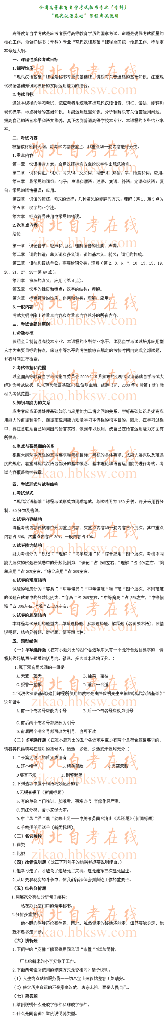 首页 > 教材大纲> 自考“现代汉语基础”(0854)考试说明