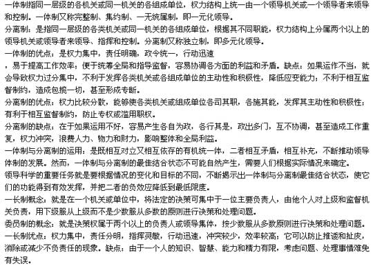 (一)领导体制的基本含义、特征及二重性