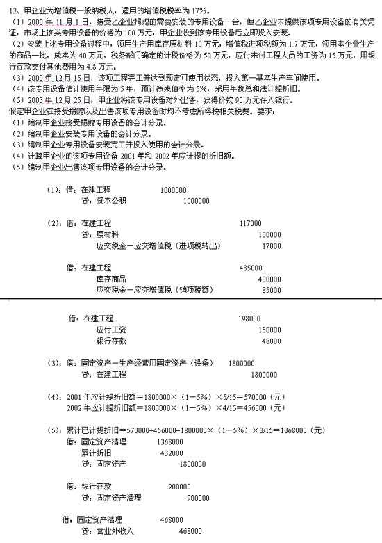 自考“中级财务会计”实务题汇总(12)