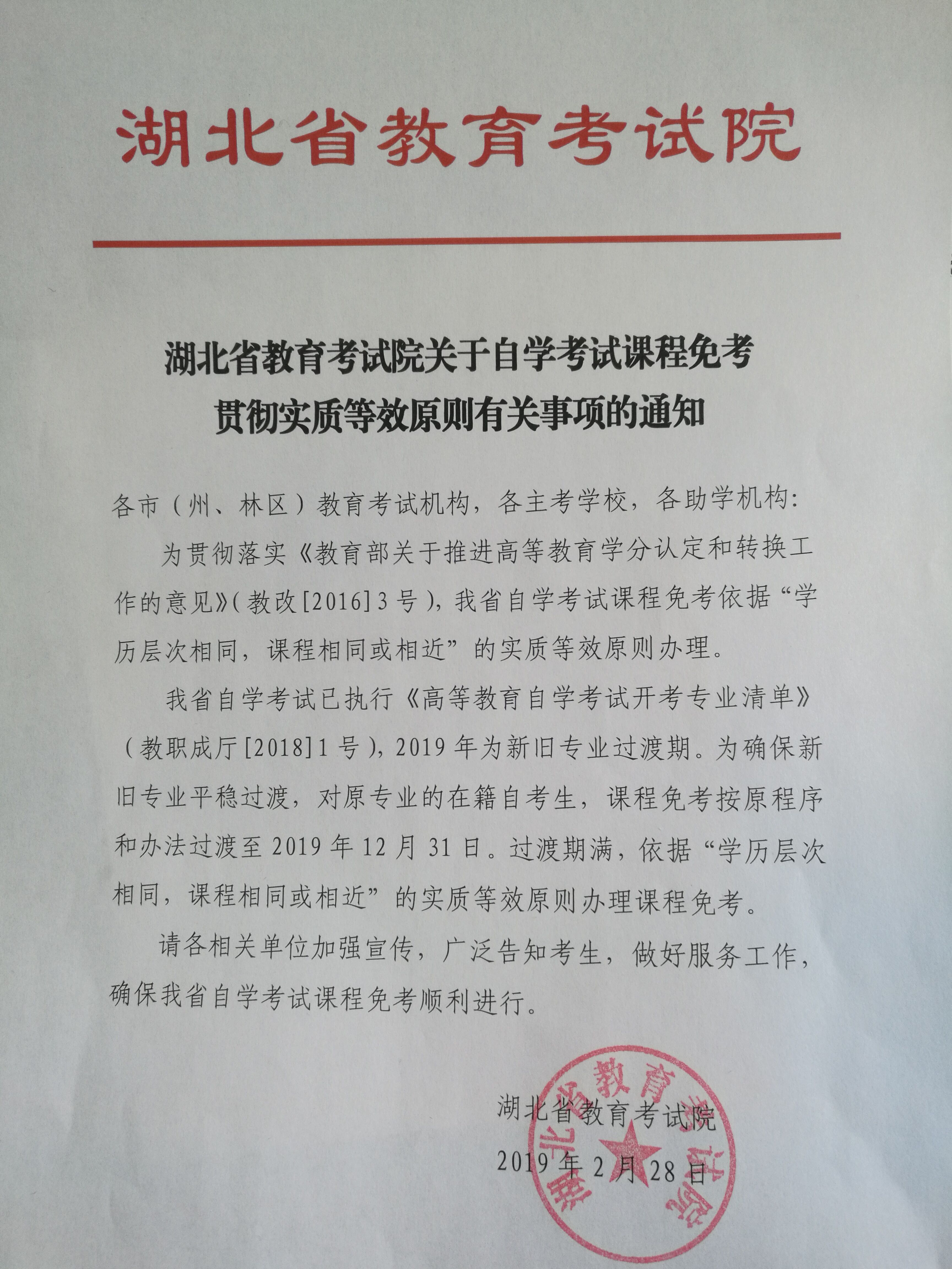 首页 > 考务考籍> 湖北考务考籍 > 2019年湖北自考课程免考有关事项通知