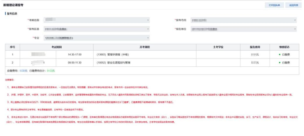 1.请考生缴费前认真核对报考课程,已缴费课程不能增减和修改,报考费不予退还。