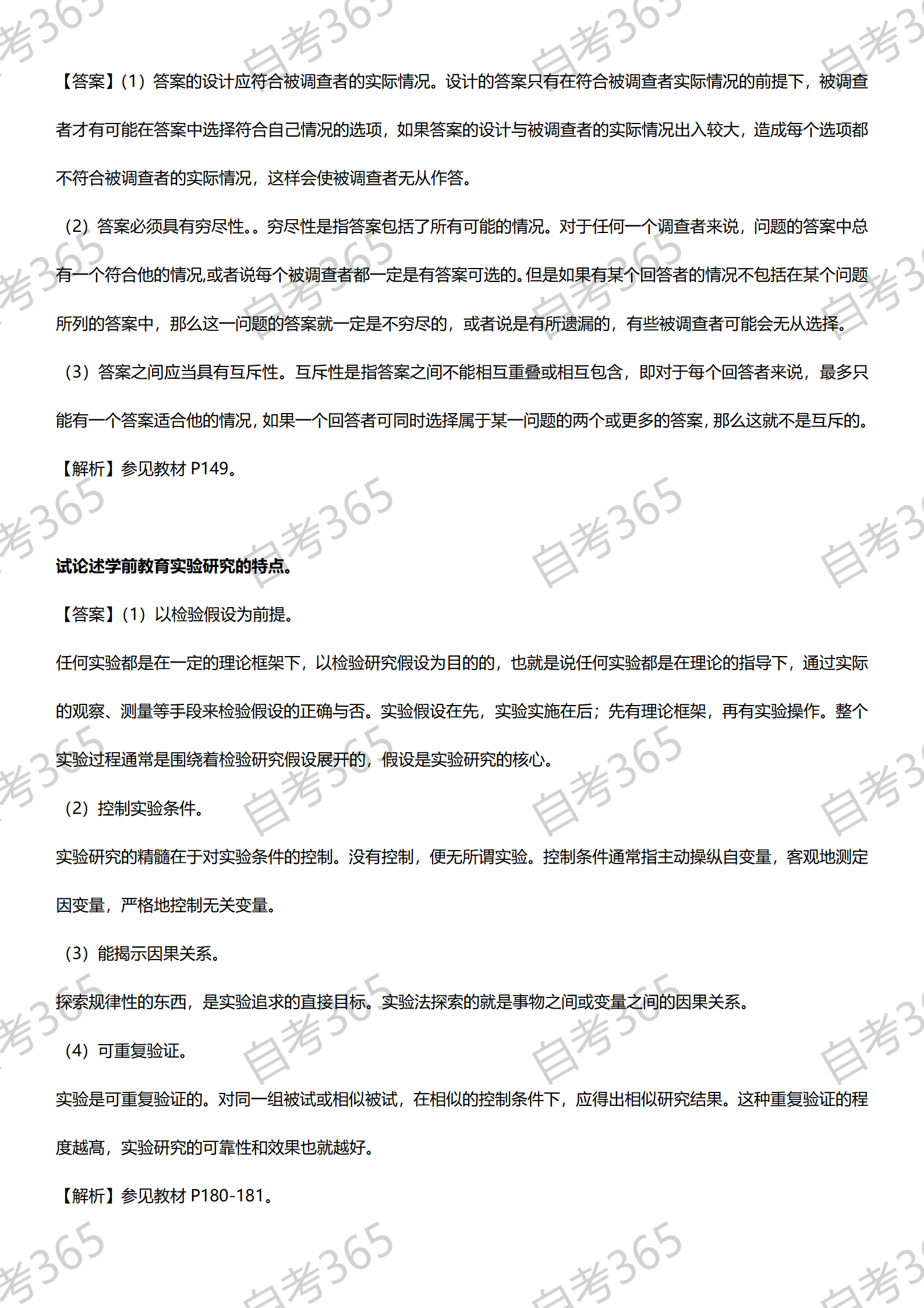 自考365网校根据部分考友的回忆,整理了学前教育研究方法2023年10月考试的部分试题,试题参考答案则是由自考365的教务老师们整理。2天自考很辛苦,希望我们广大自考生好运附体,答的都对,蒙的都能得分!
