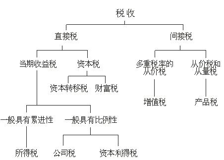间接税:对商品和劳务征收的。如:一般由零售商、批发商、销售商直接缴纳,而结果却转嫁给更终产品消费者的税。主要有商品税、增值税、关税。