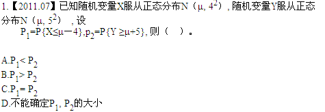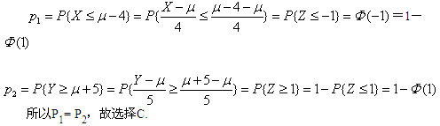 答案解析: 本题根据课本P47,例2-23编制,考察正态分布事件概率的求法——化标准正态分布。