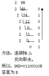 答案解析:本题考查数制间的转换。将十进制数转换成二进制数的计算过程如下面所示: