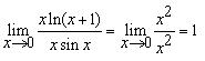 答案解析:因为当x→0时,ln(x+1)~x,sinx~x,故