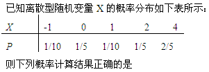 答案解析:由于随机变量的取值为-1,0,1,2,4,不含3,故P(X=3)=0。显然,选择A。