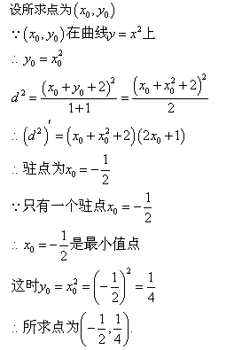 1.[2002.07]在曲线y=x2上求一点,使得它到直线P:x+y+2=0的距离d更小( )。