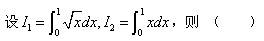 答案解析:本题考查积分的计算。由于在[0,1]上,根号x大于x,所以I1>I2。