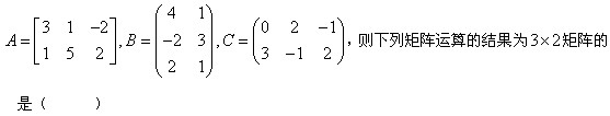 答案解析:本题考查矩阵的计算法则。此题的关键是各乘积矩阵的阶数:ABC,ACTBT,CBA都是2×3阶,CTBTAT是3×2阶。