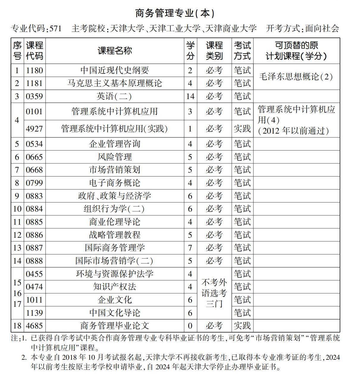 2023年4月天津自考本科商务管理专业计划
