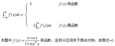答案解析:本题考察定积分对称性。由定积分对称性,即