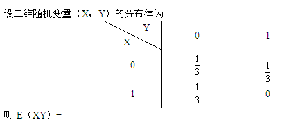答案解析:本题考察二维离散型随机变量函数的数学期望的计算方法。设,则,故选择B。