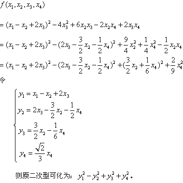 1.用配方法将二次型f(x1,x2,x3,x4)= x12+x22-2x1x2+4x1x3+2x2x3-2x2x4+2x3x4化为为标准形为( )