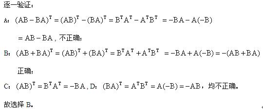 答案解析:本题考查反对称矩阵的定义。