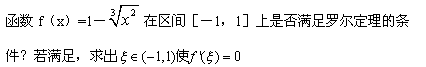 答案解析:本题考查罗尔定理应用。f(x)在[-1,1]上连续,但f‘(0)不存在, 故f(x)在(-1,1)中有一点不可导,罗尔定理条件不满足。