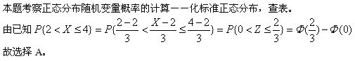 [2011.10]设随机变量X~N(2,32),(x)为标准正态分布函数,则P{2<X≤4}=
