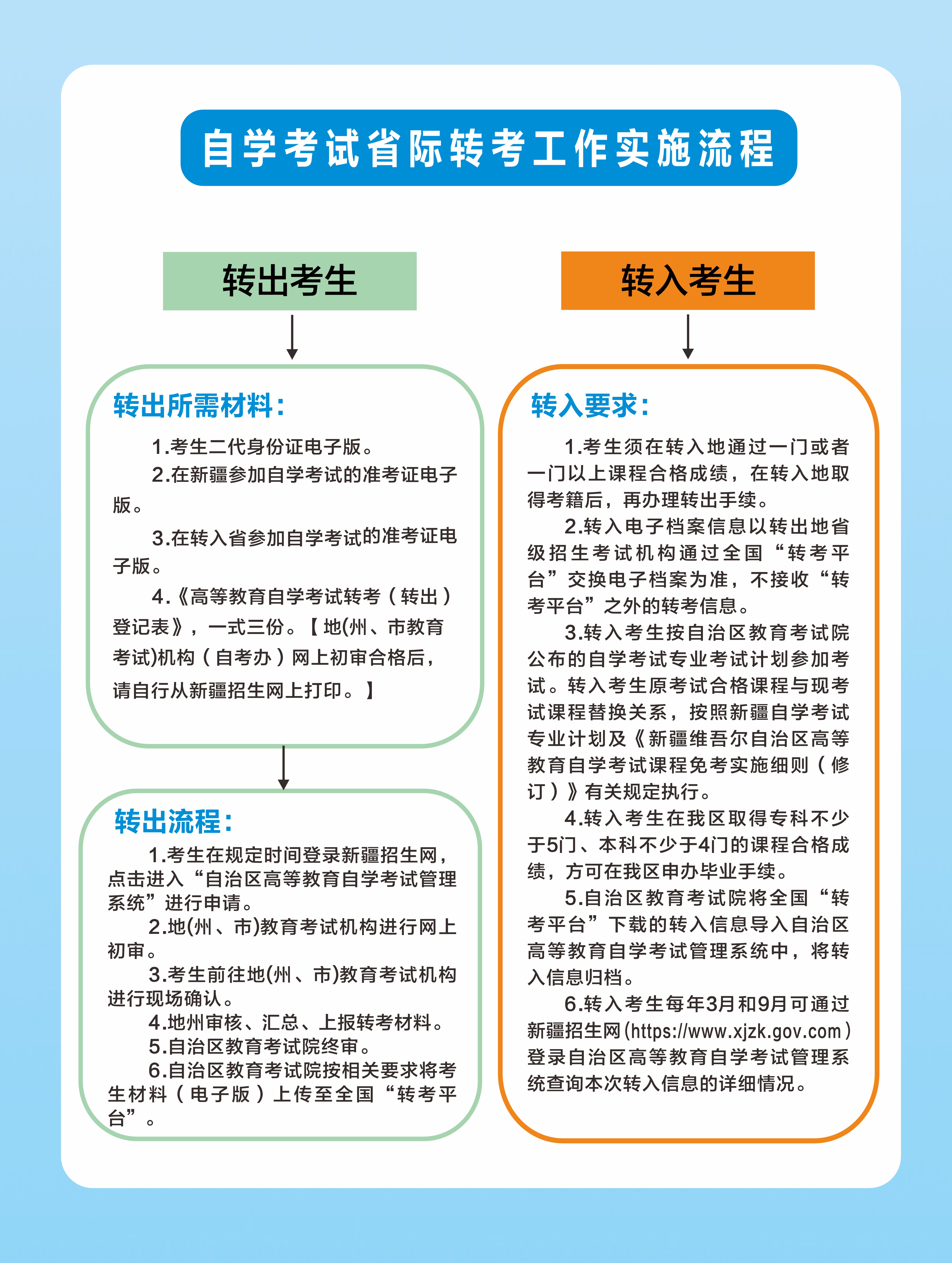 新疆维吾尔族自治区自学考试省际转考工作实施流程